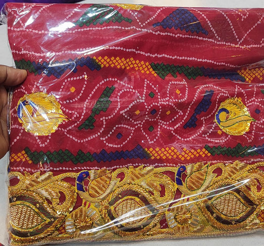 Kolkata Special Pure Ojaria Bandhej Zardozi Handwork Rajasthani Chunri/Odhna