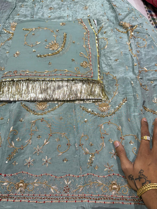 Bembar satin thakurji pure odhna bridal heavy jardoji dabka work poshak*