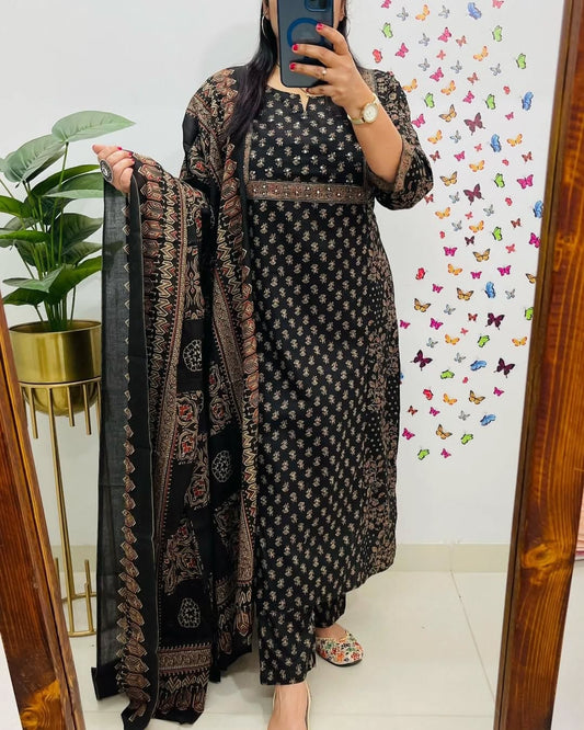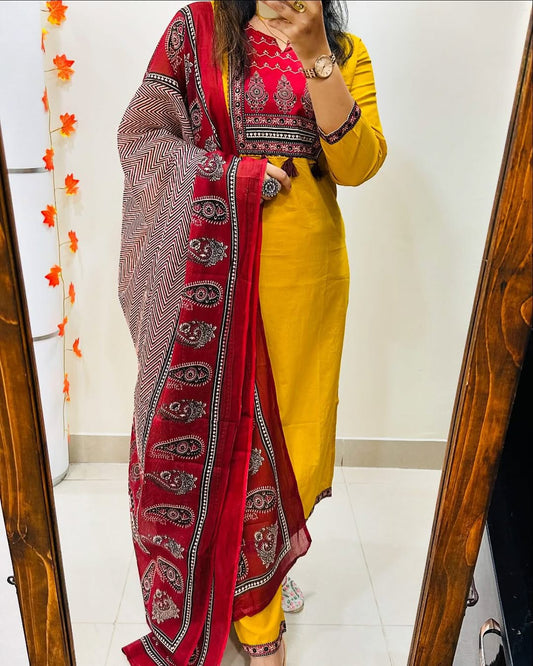 Pure fine Cotton fabric Kurti with Pant with cotton Dupatta Size: *M/38, L/40, XL/42, XXL/44,XXXl/46*