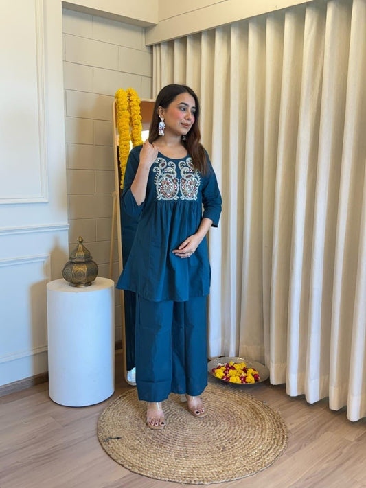 Beautiful embroidery cotton kurti set Size - 38/40/42/44*