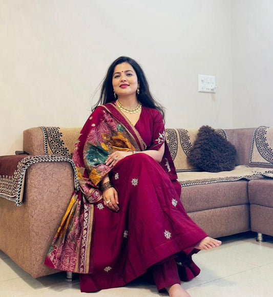 Khadi cotton beautiful embroidery kurta pant dupatta set Size _ 38.40.42.44.46