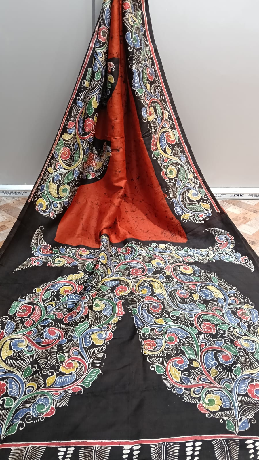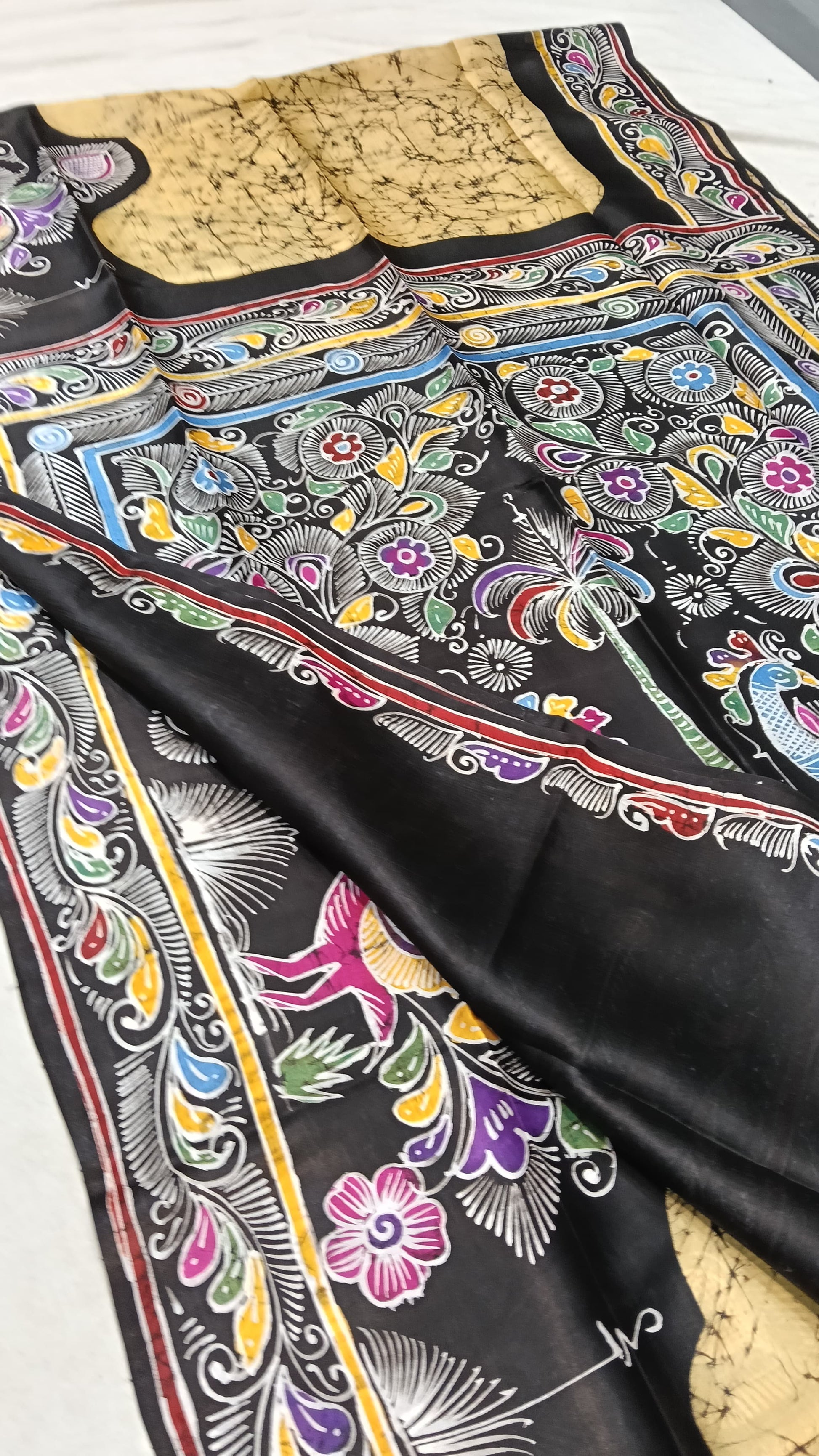 Batik Handprinted Pure Silk saree Silk Mark Certified