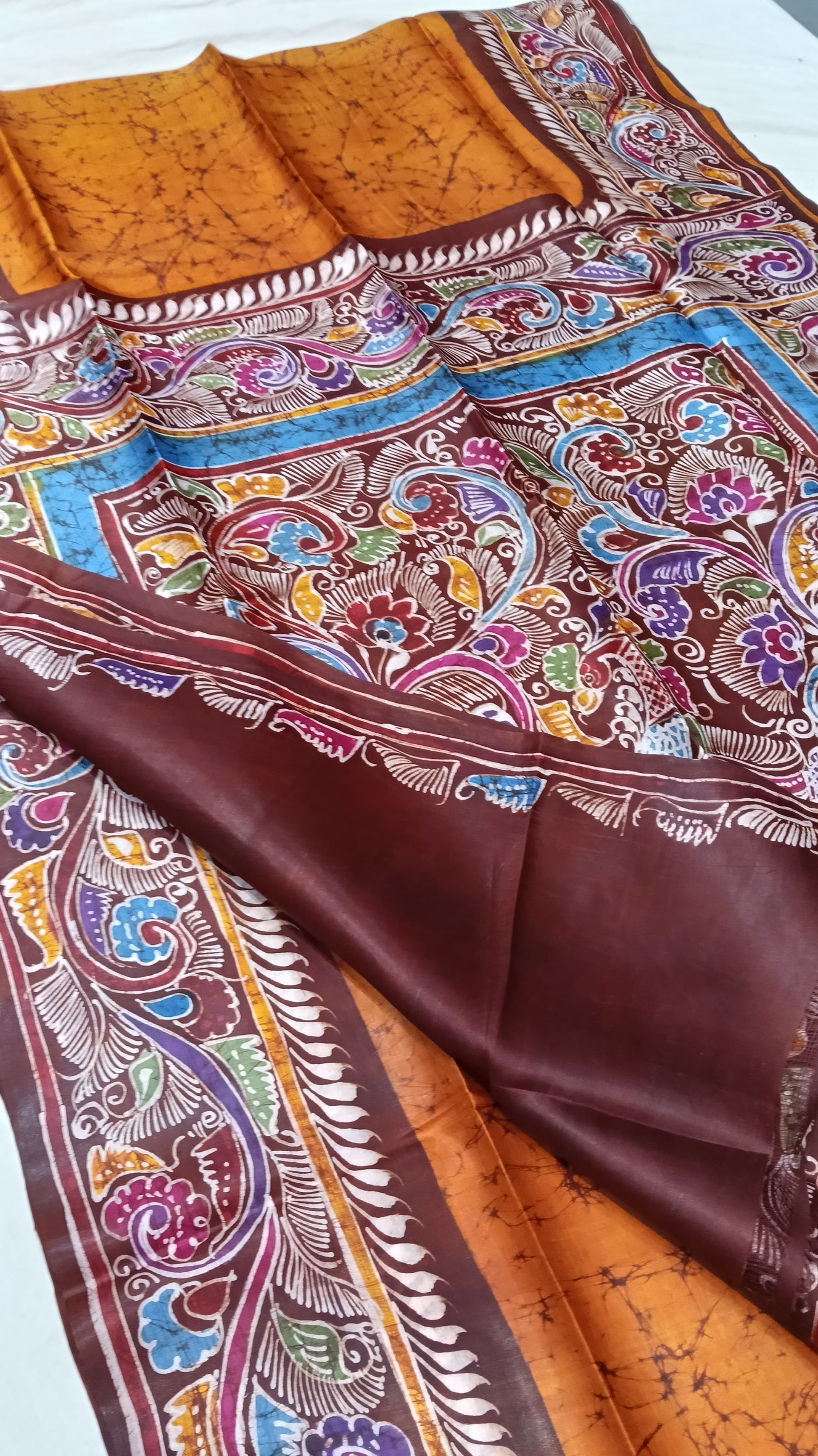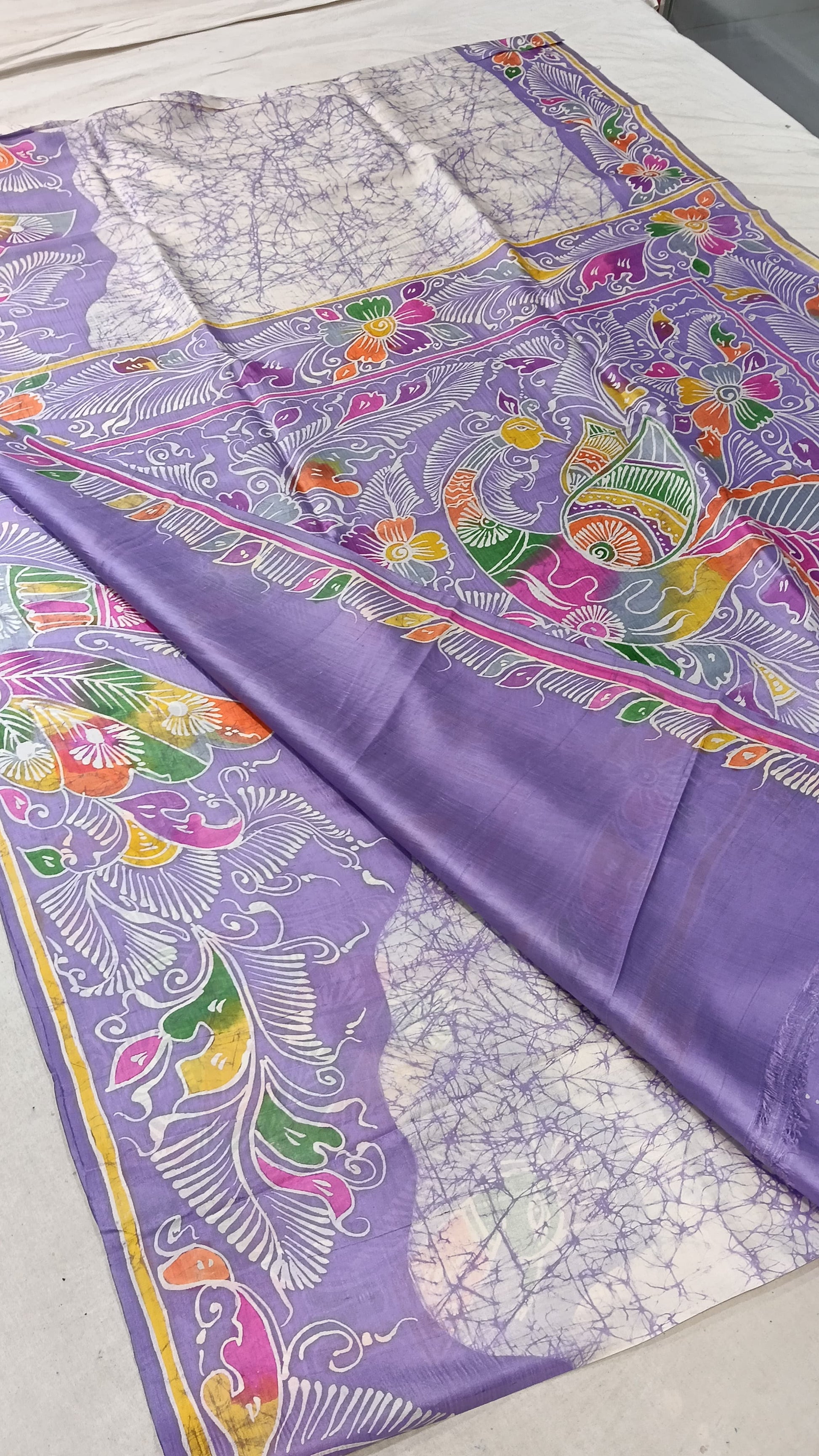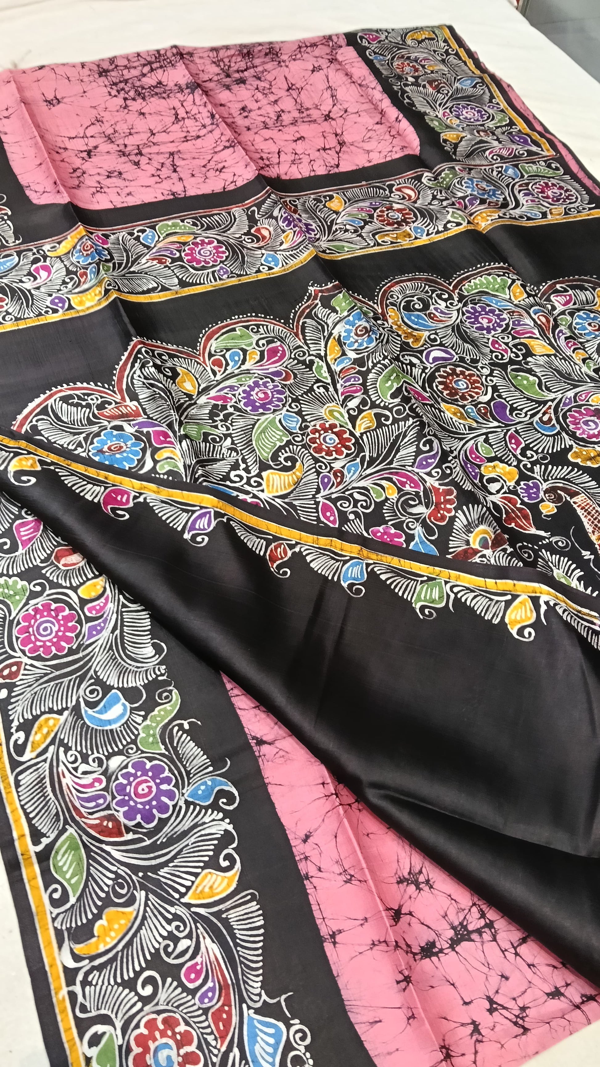 Beautiful Batik Hand-Painted Pure Silk Saree – Silk Mark Certified