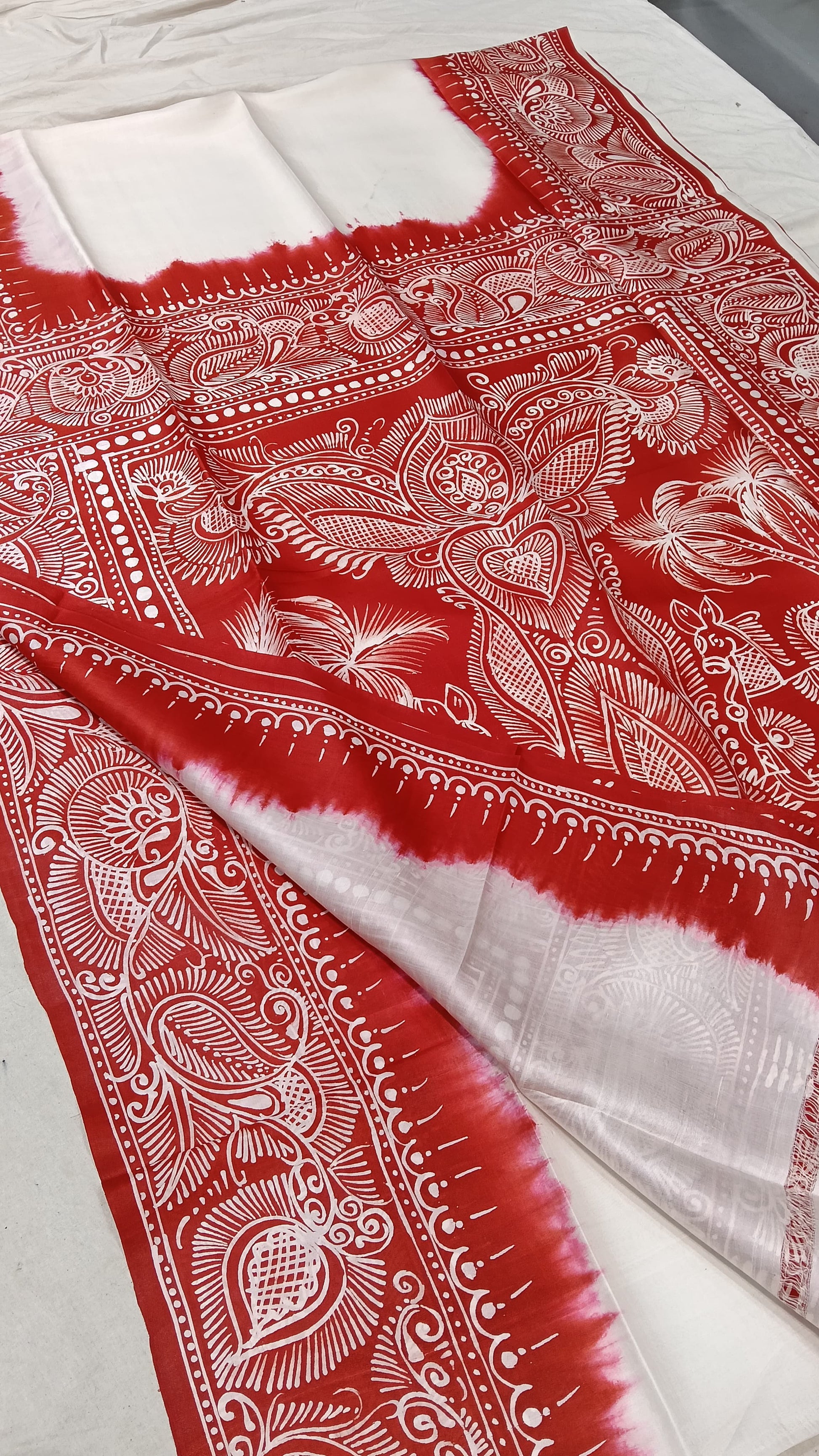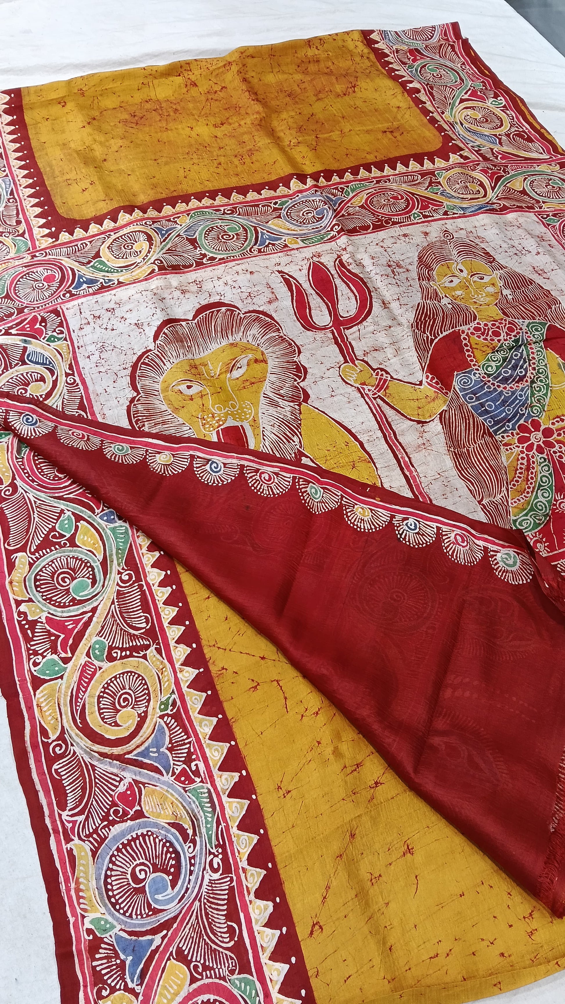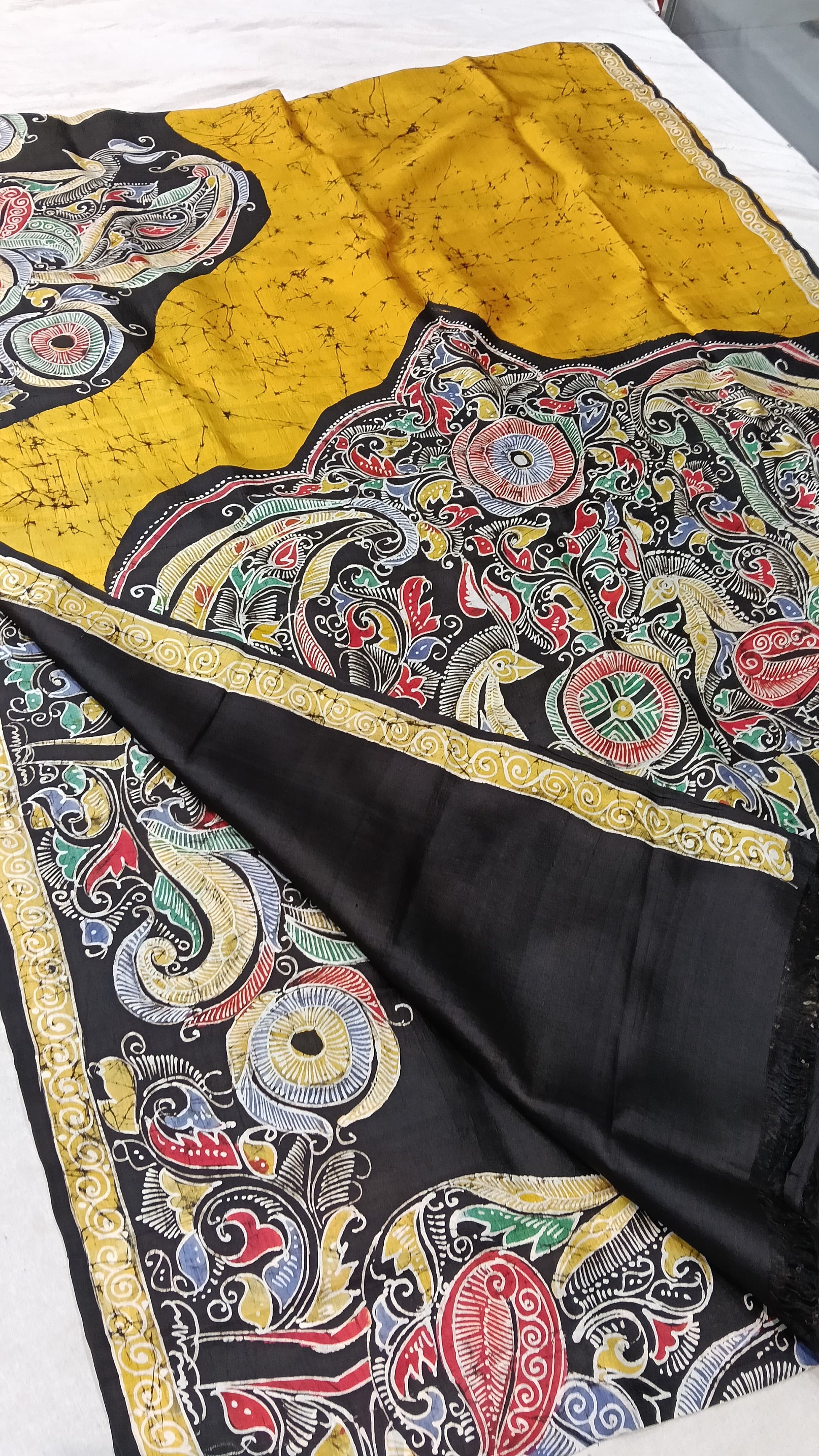 Beautiful Batik Hand-Painted Pure Silk Saree – Silk Mark Certified