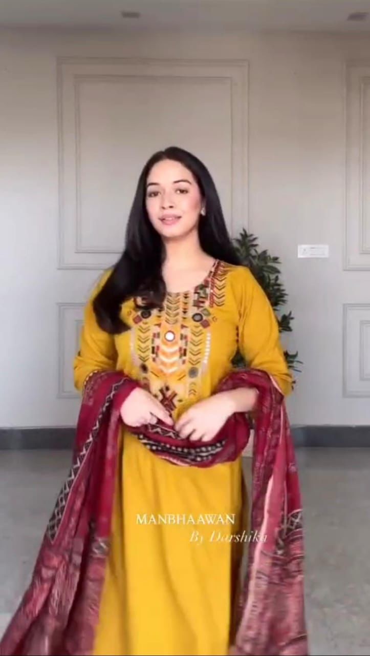 *Pure fine Cotton fabfabriclheavy embroidery Kurti with Pant with cotton 100-100 Dupatta*