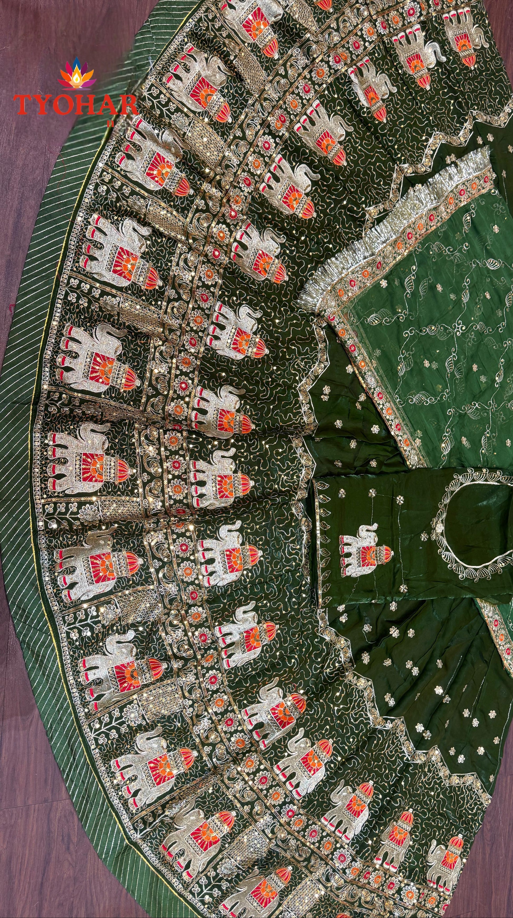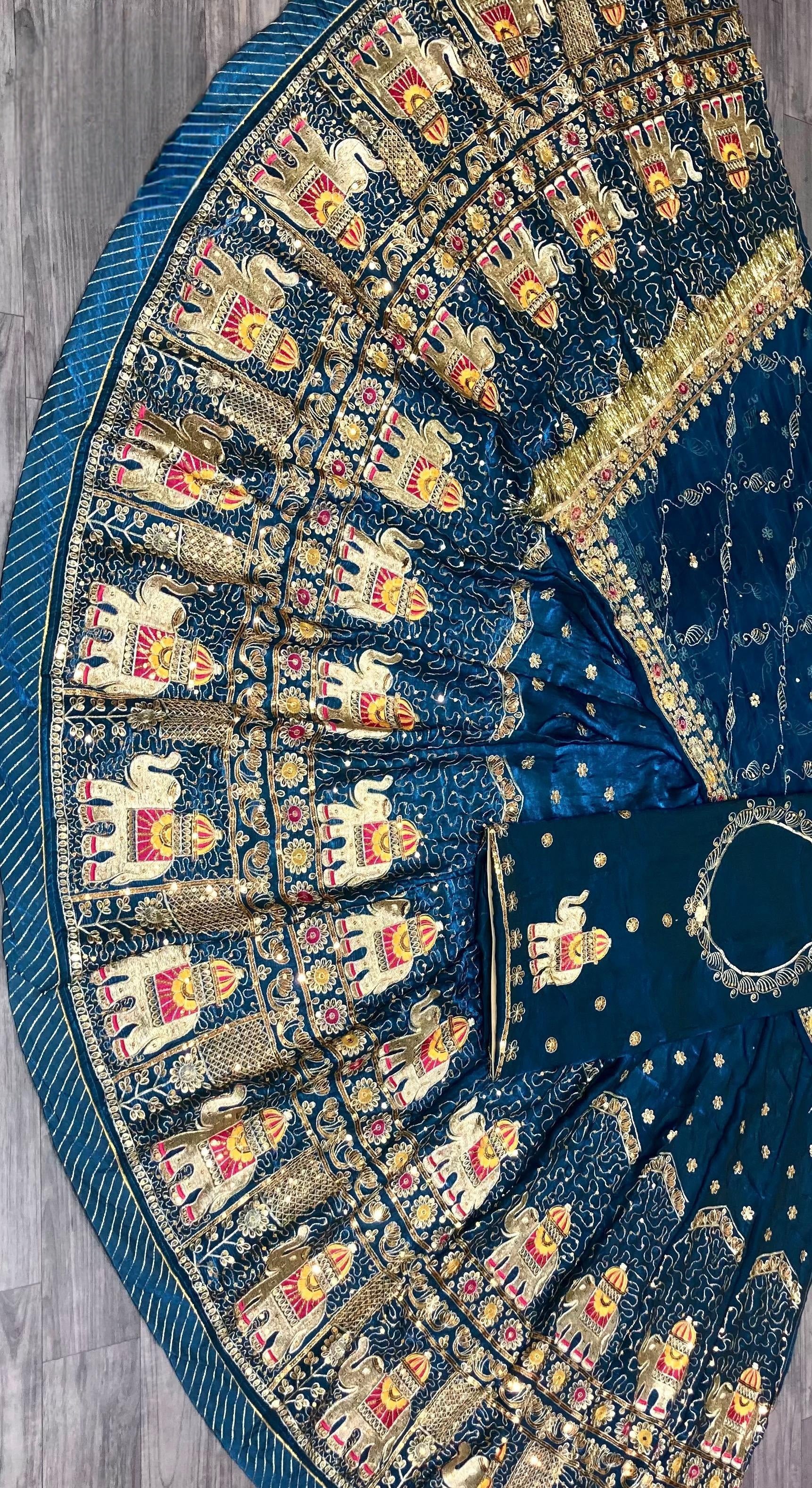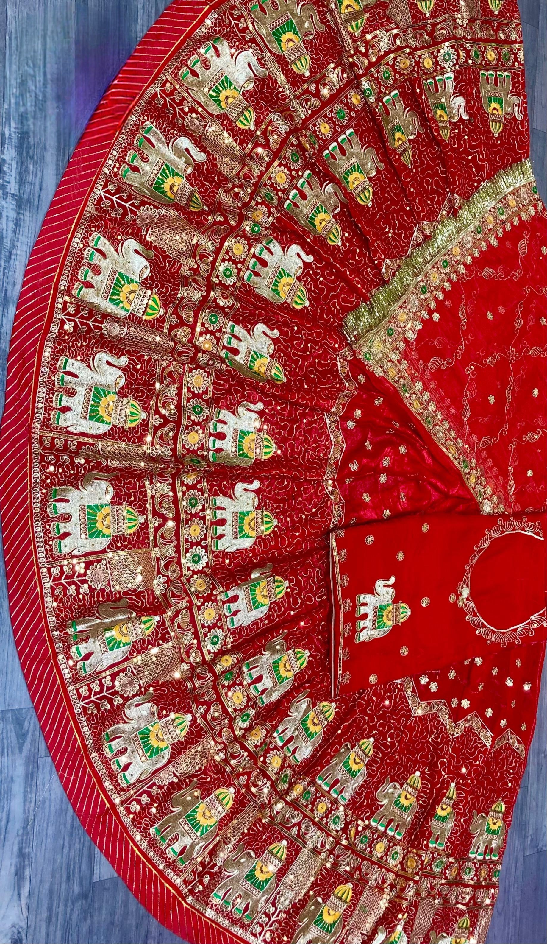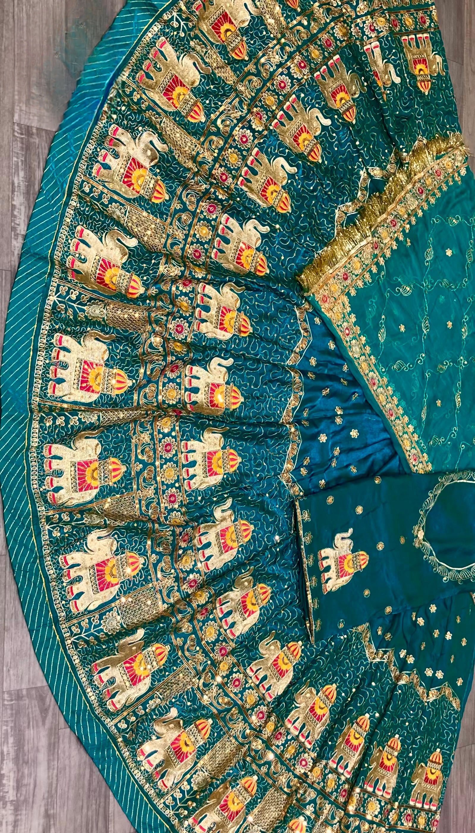 Odhani: Features heavy work on all four sides with heavy Zaal work and finished with Gota Turri.