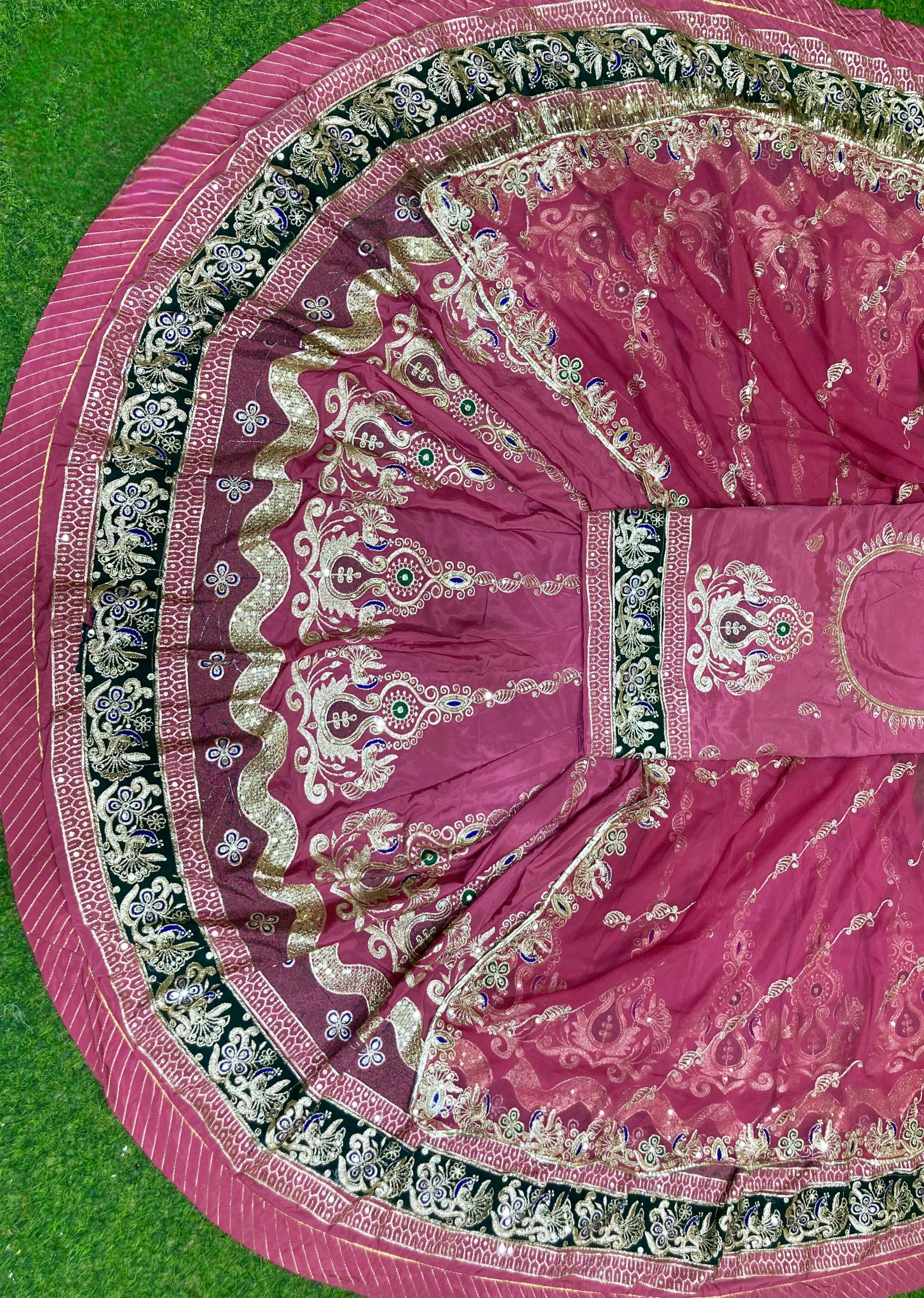 CREPSILK Fabric with pure Odhani Hevy VINTAGE Barik Zari work beautiful Rajputi poshak
