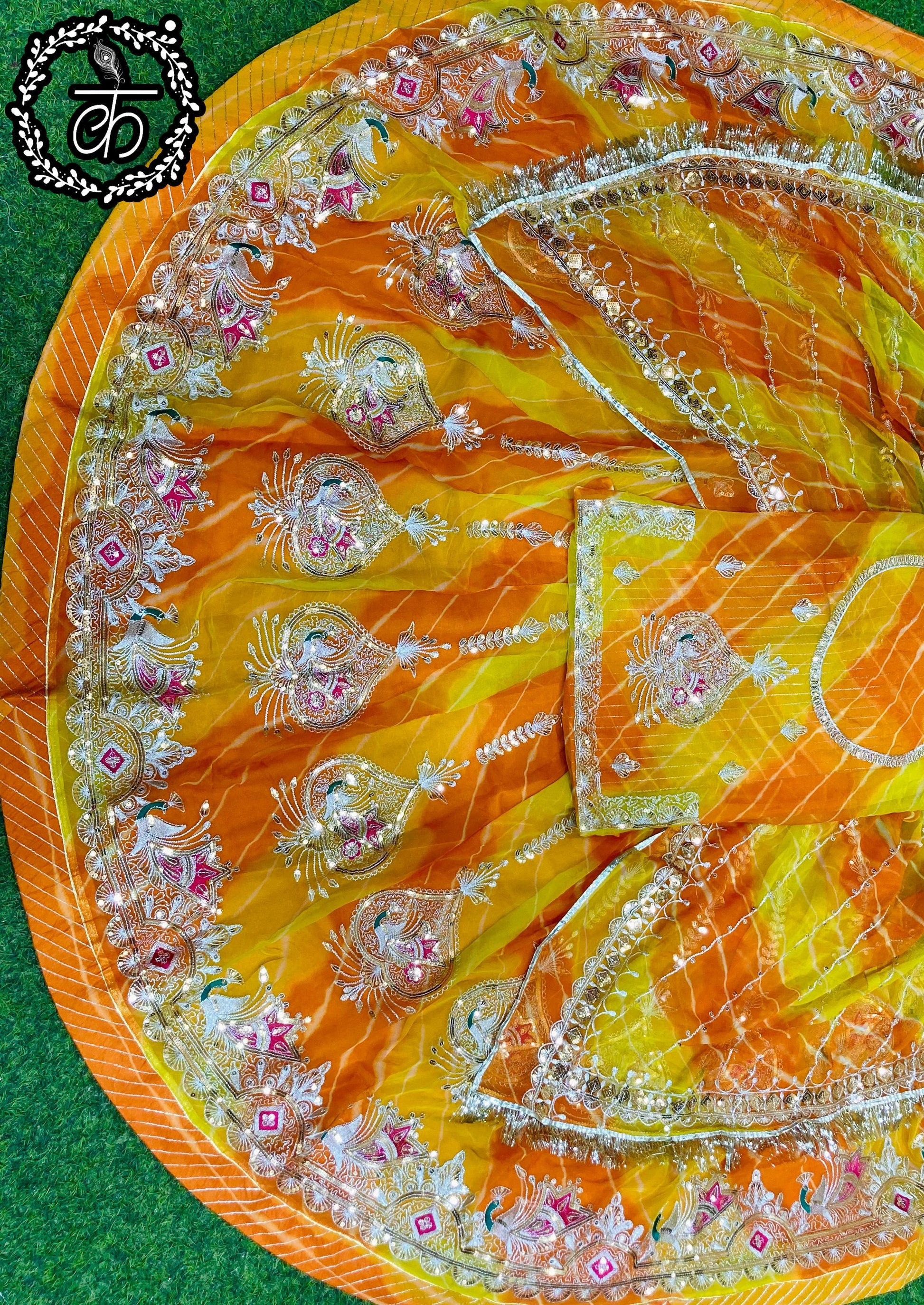 Experience timeless elegance with this royal pure fabric poshak, designed with a fancy kali pattern and a grand gher for a majestic look.