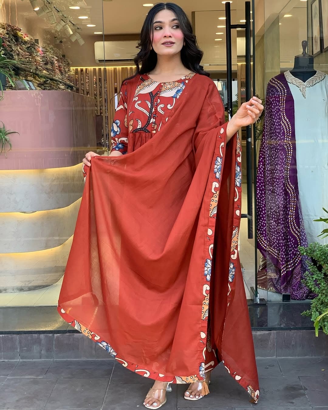 *Pure fine Cotton fabric Kurti with Pant with cotton 100-100 Dupatta**Nack Hand work*