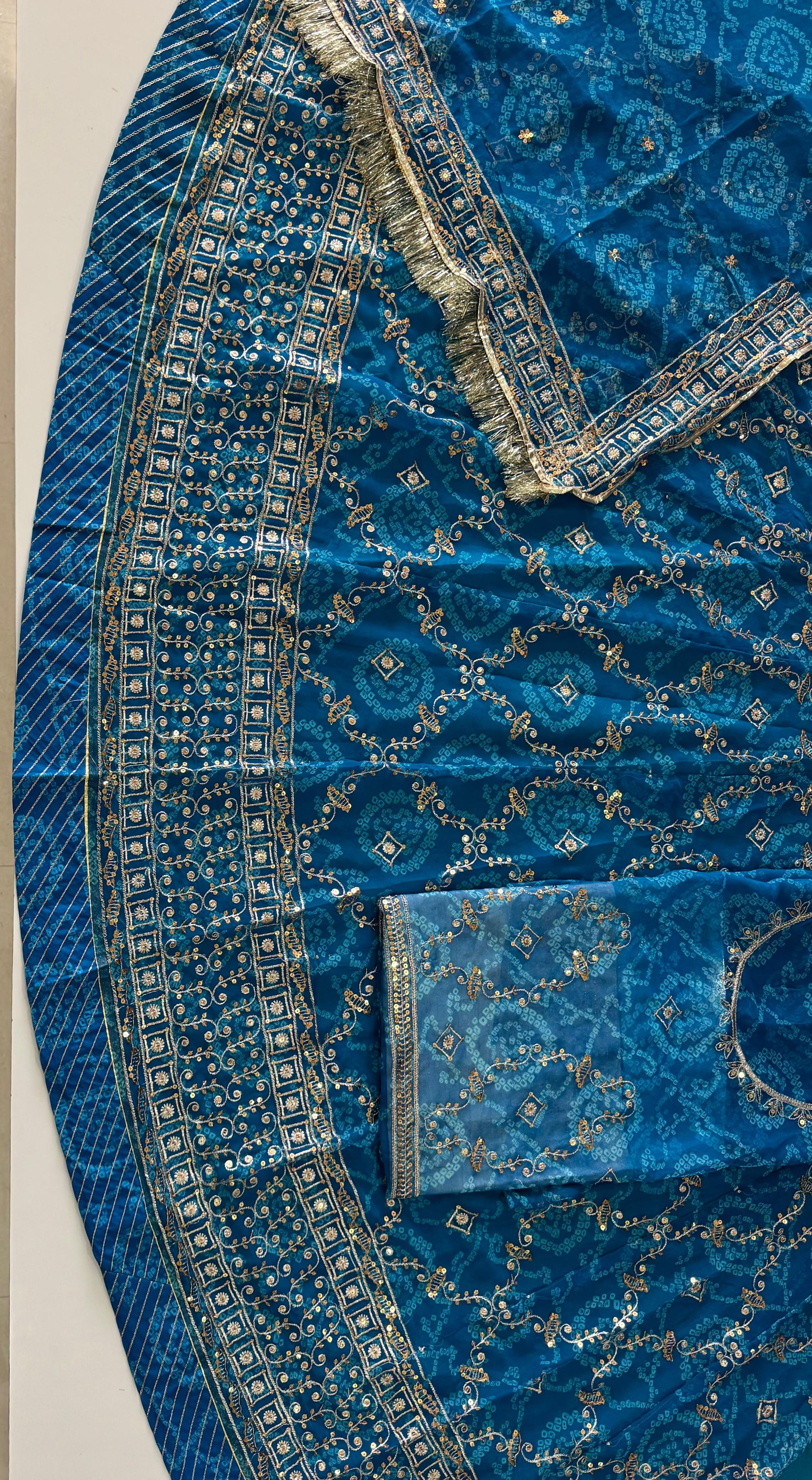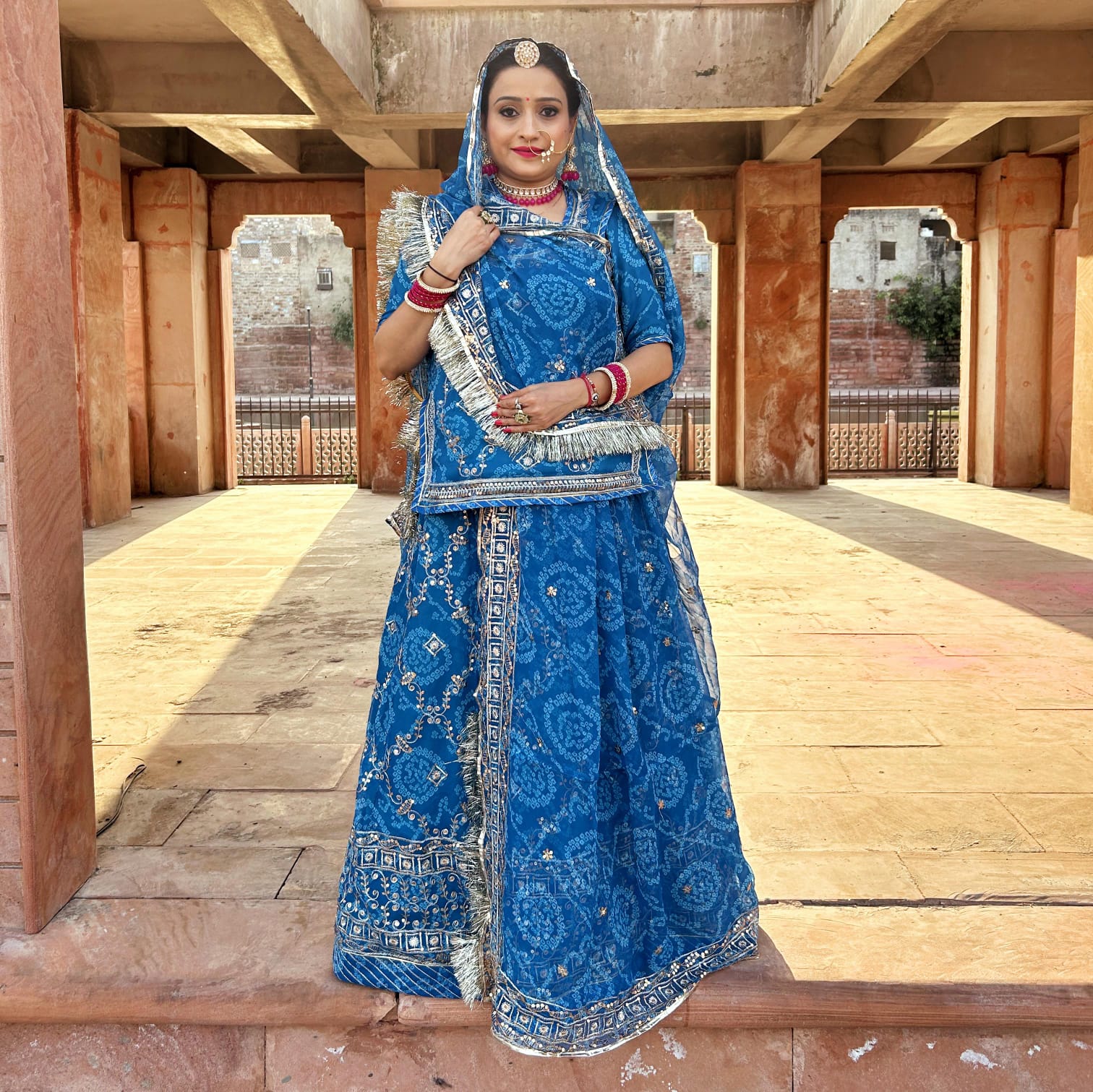 Halfpure Chundari Rajasthani Poshak | Heavy Jari Sequence Work & Butti Odhna