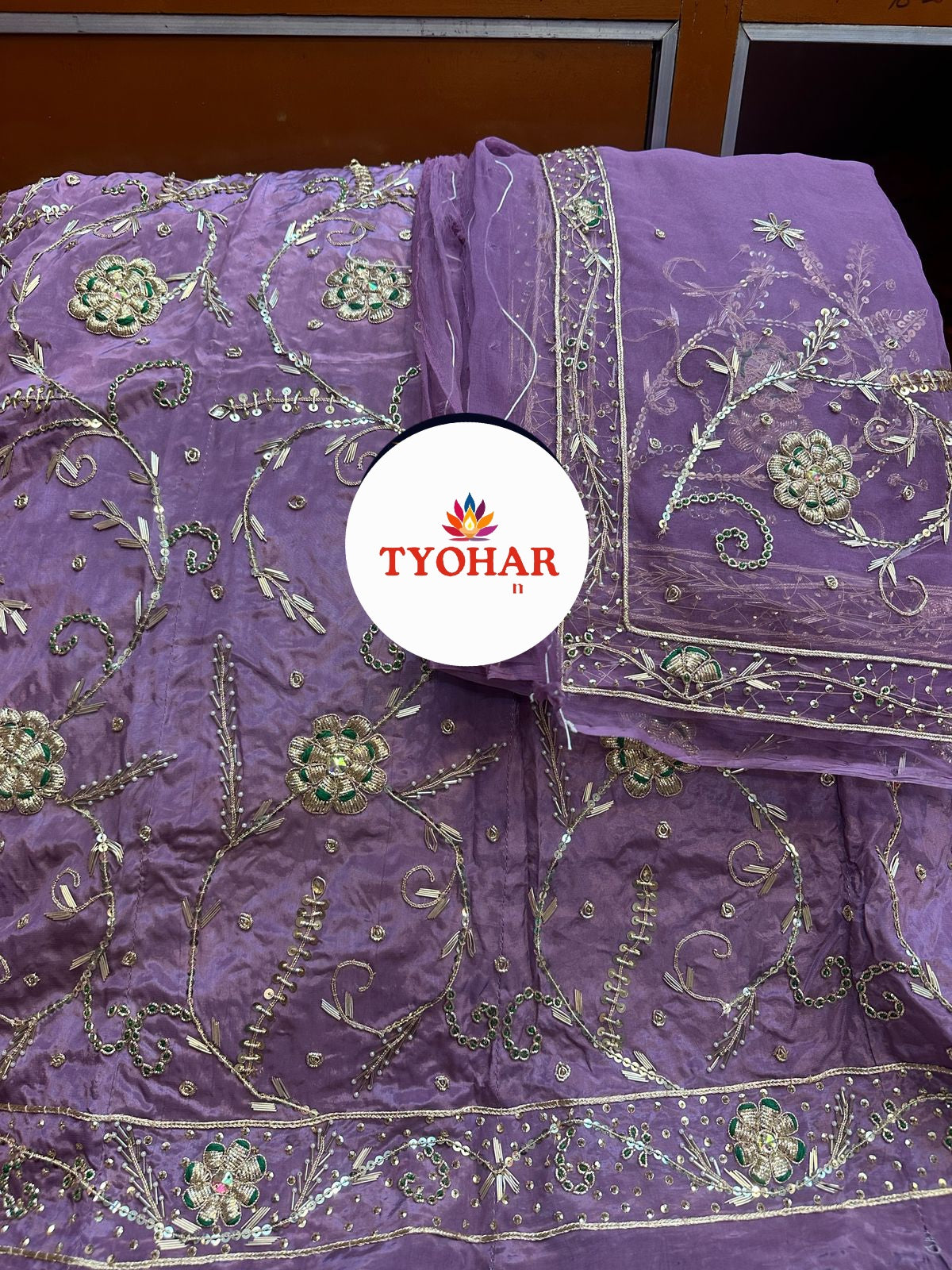 *natural silk pure odhna heavy dabka jardoji poshak handwork*