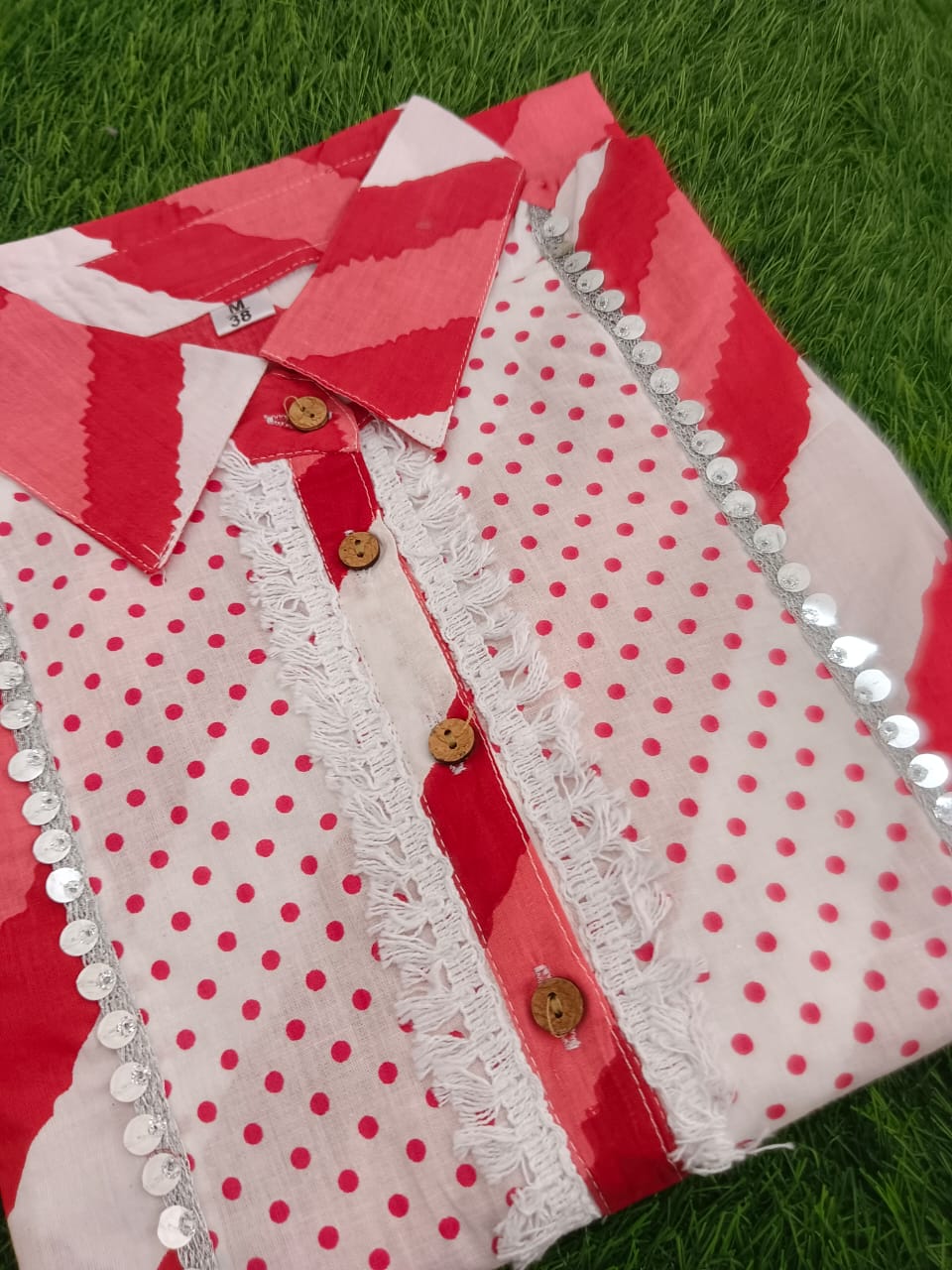 Lahriya print cotton kurti with afgani pent size 38 to 44