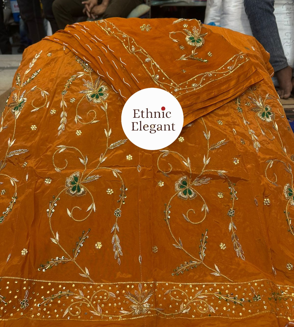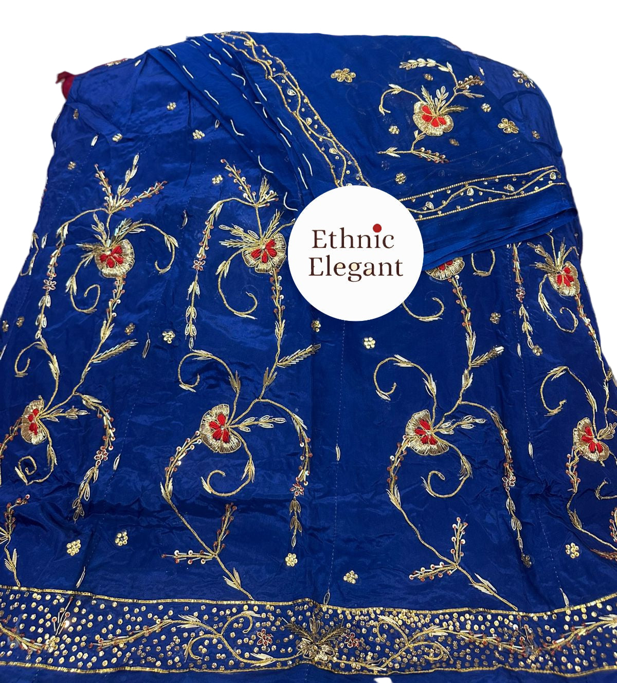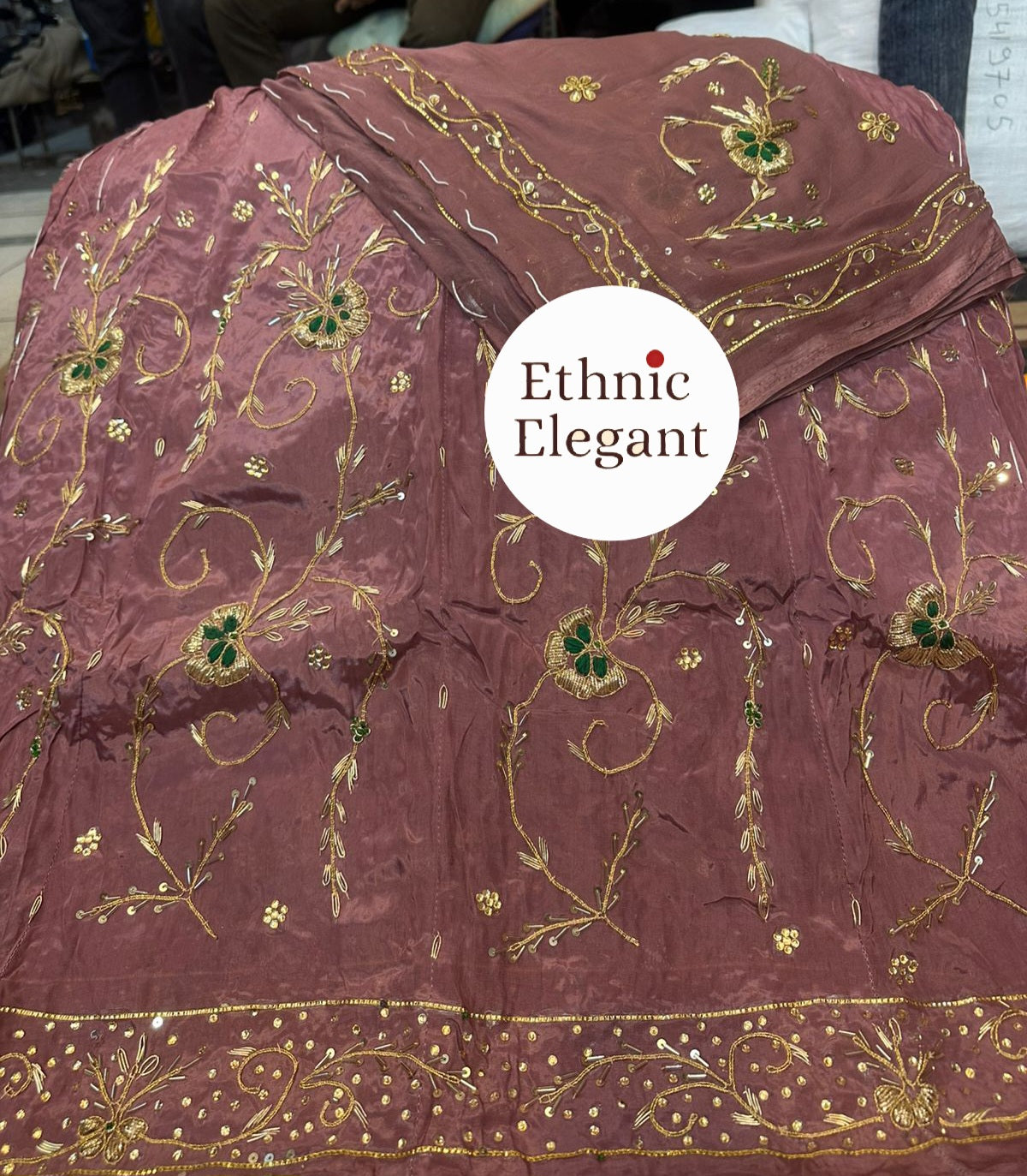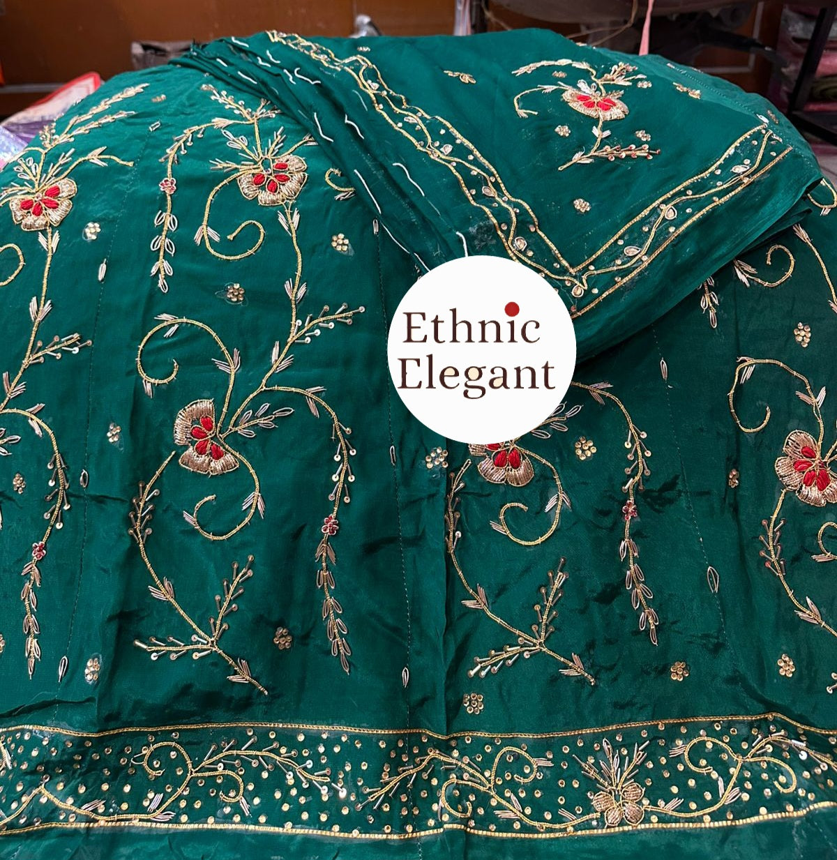 Handwork: Beautiful and heavy handwork featuring traditional Jardoji and Dabka techniques.