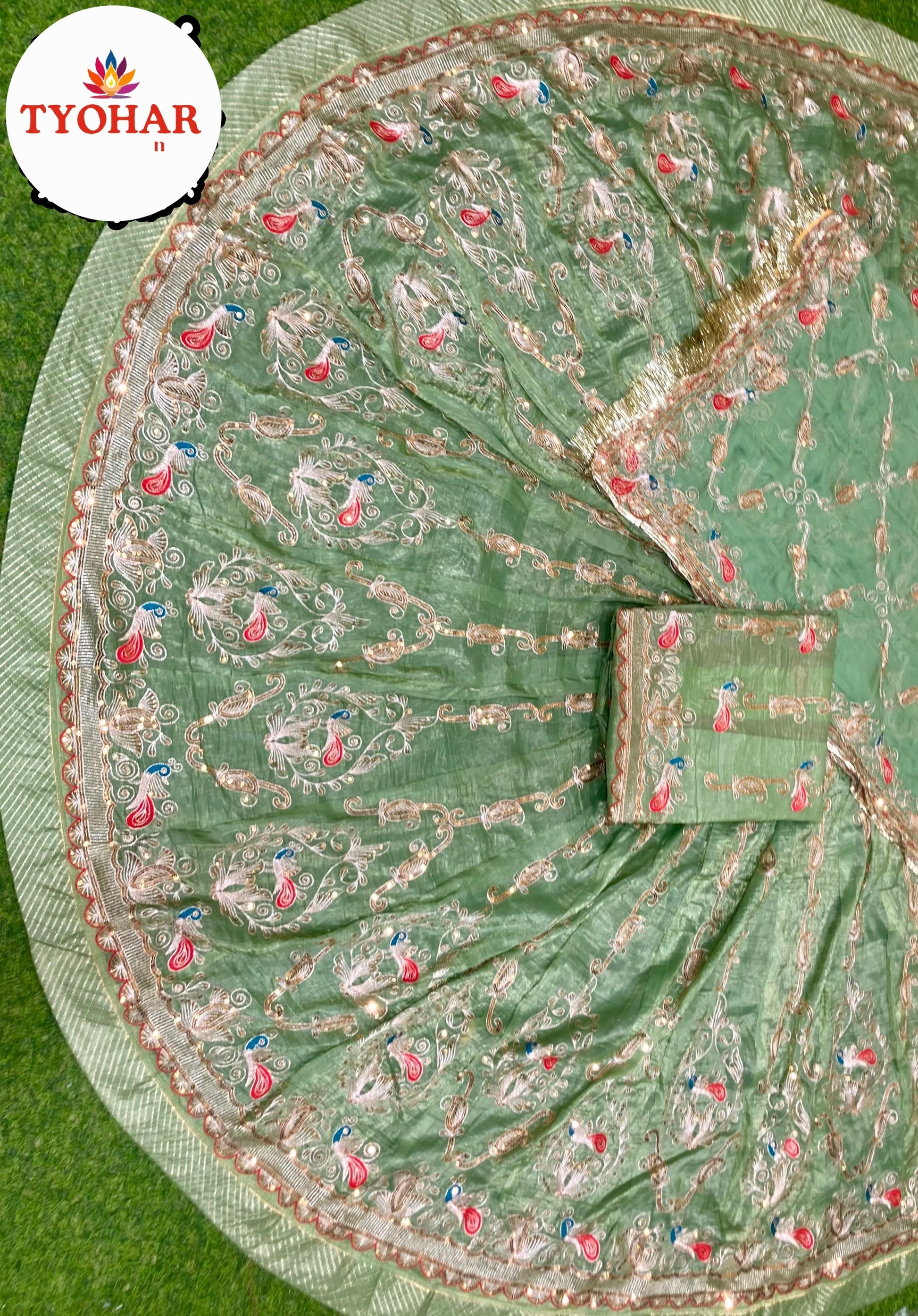 *Hevy Odhni four side work with Hevy Jaal work with Gotta turri*