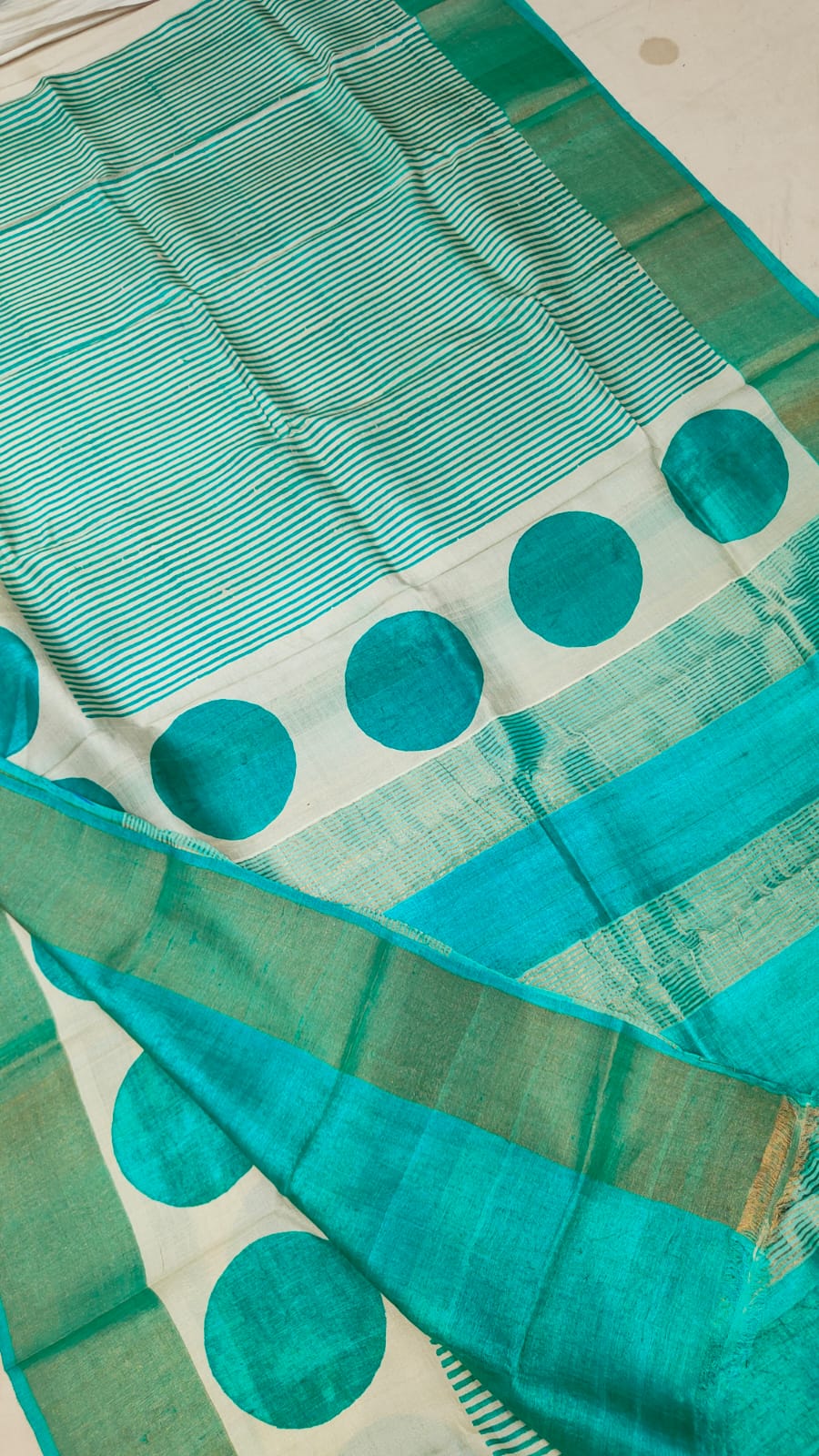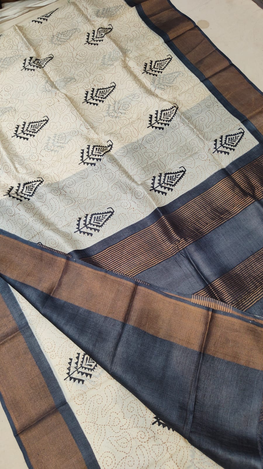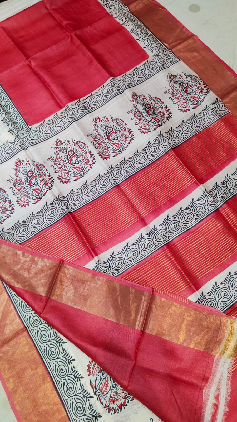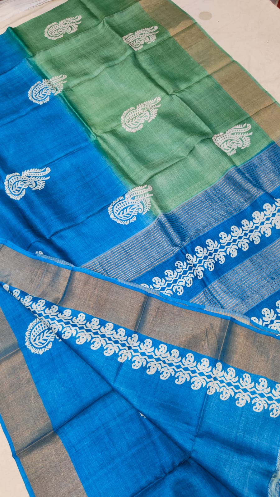 Madhubani Hand printed Tussar pure silk saree silk mark certified